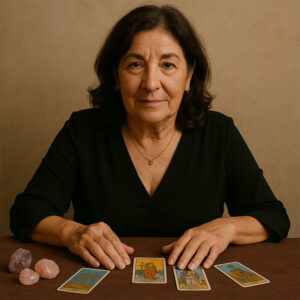 “Tu siguiente paso deja de ser un enigma cuando juntamos mi tarot, mi videncia y mis mancias como brújula. Con más de dos décadas y media de práctica, te entrego nombres, fechas y la certeza que tu corazón anhela. Haz tu llamada y toma las riendas de tu vida.”